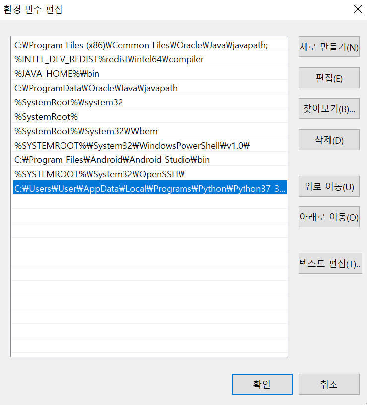 환경 변수 체크를 안했다...??