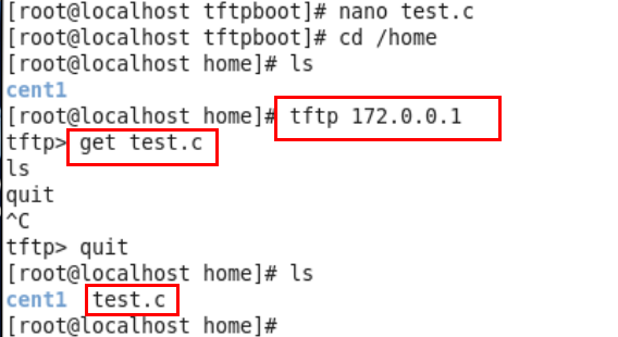 #tftp 파일인 /tftpboot에 test.c를 만들고