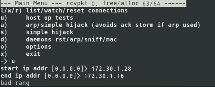 #./hunt -i eth0(ifconfig하면 나오는 인터페이스)