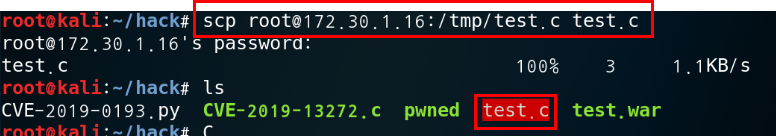 scp root@IP주소:원본경로 목적파일명(클라이언트의 현재 디렉터리에 복사한다.)