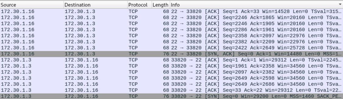**왜 클라이언트의 요청이 먼저가지 않았는지는 의문.. 먼저 서버->클라이언트로 ACK가 온다.