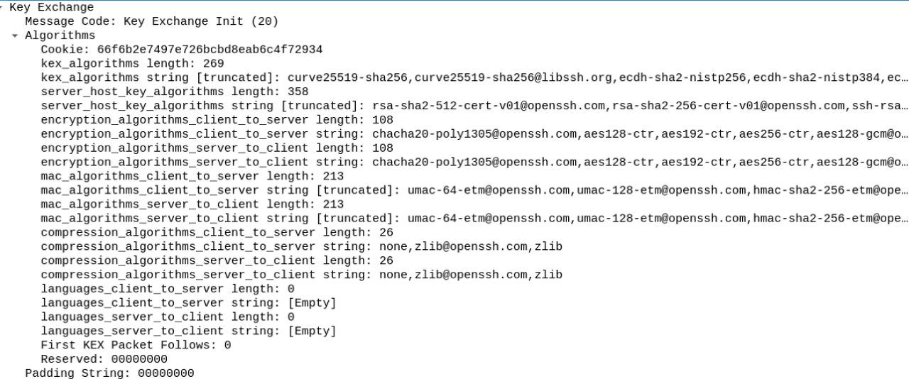 Key Exchange Init(가능한 암호화 방법 서로 보내줌)