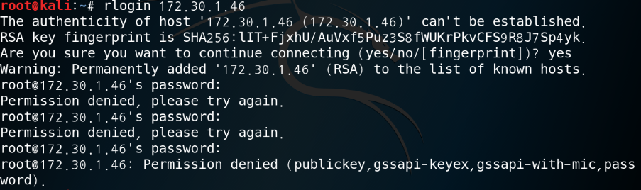 rlogin : 원격 접속, 두 시스템 간 신뢰관계를 맺으면 암호 없이 로그인 할 수 있다.