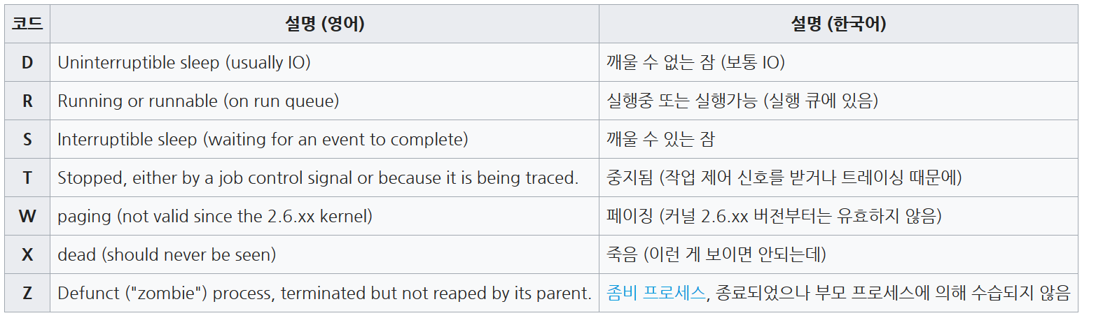 리눅스 프로세스 상태코드