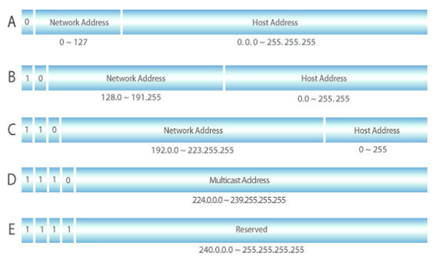 맨 앞 비트가 0인 IP이다.