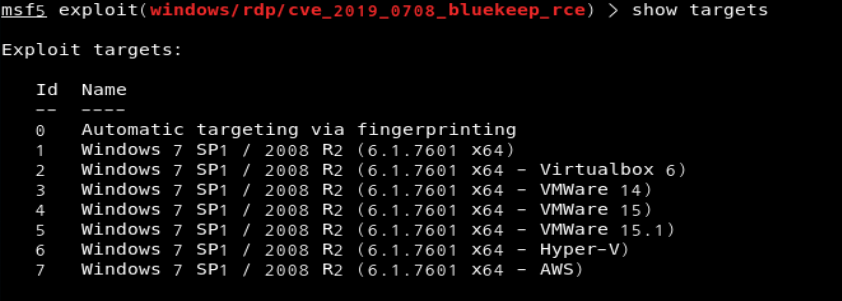 # use windows/rdp/cve_2019_0708_bluekeep_rce