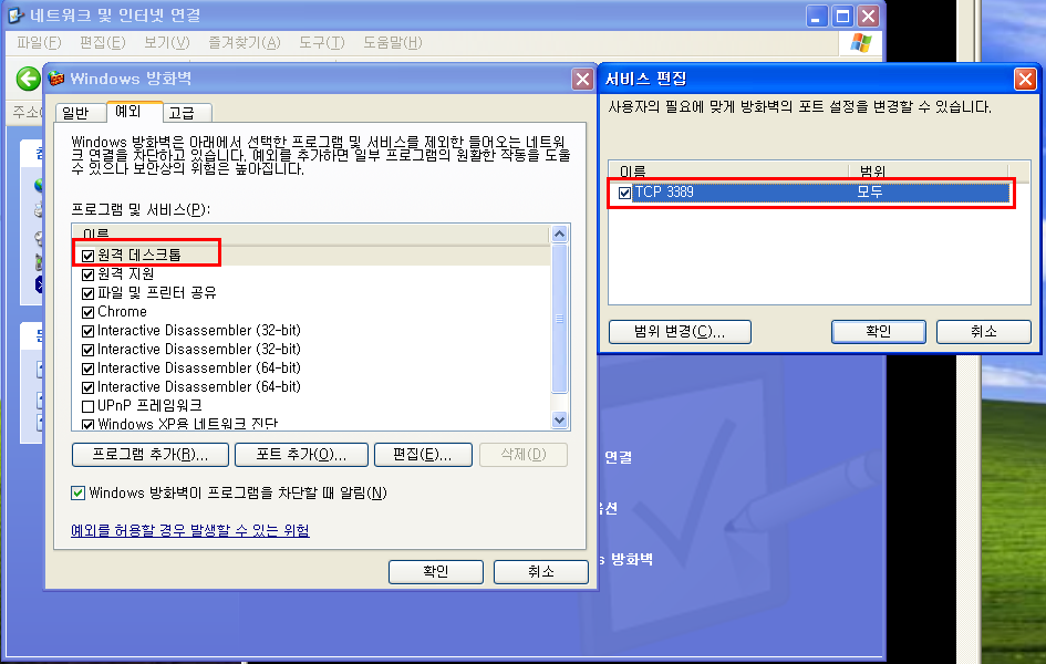 "원격 데스크탑 연결" 기능으로 Network상에서 하드디스크나 프린터를 공유하기 위해 주로 사용된다.