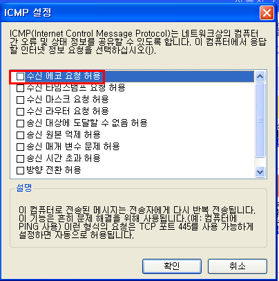 "수신에코요청허용" 체크하지 않기