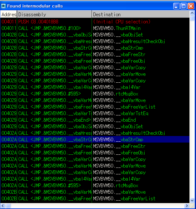 답은 __vbaStrCmp였다..