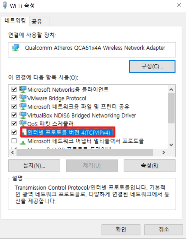 3. 인터넷 프로토콜 버전 4(TCP/IPv4)