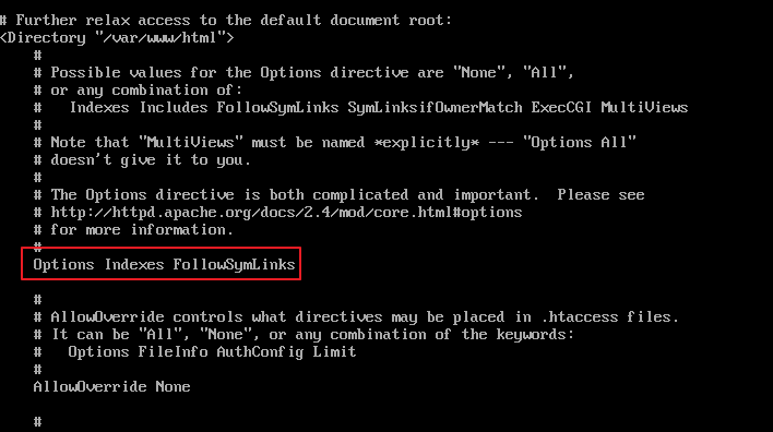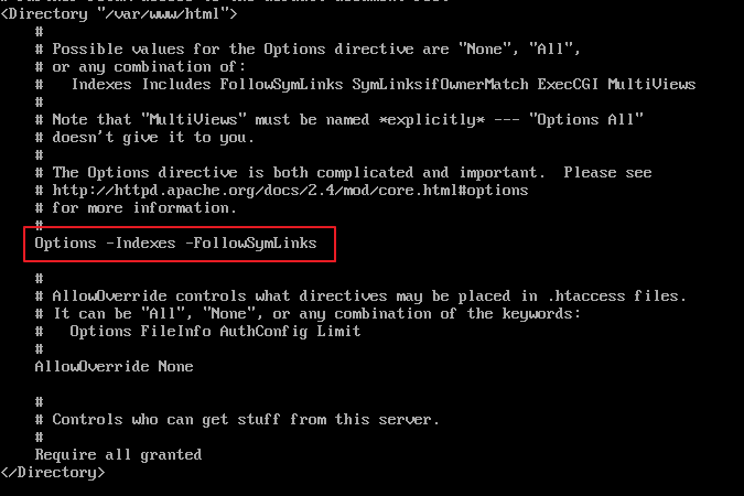 -Indexes -FollowSymLinks 로 수정해주기