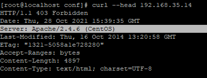 httpd.conf 에 default로는 ServerTokens 지시자가 없음. 만들어야함.