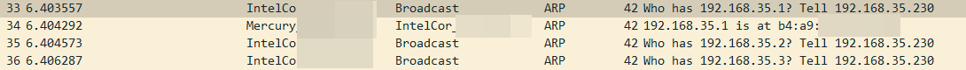 192.168.35.1/24 대역대에 패킷을 보낸다.