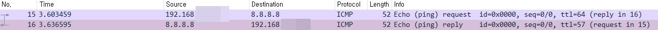 내IP->8.8.8.8 패킷 body에 'HelloWorld'가 있고, 8.8.8.8->내IP 패킷 body에도 'HelloWorld'가 있다.